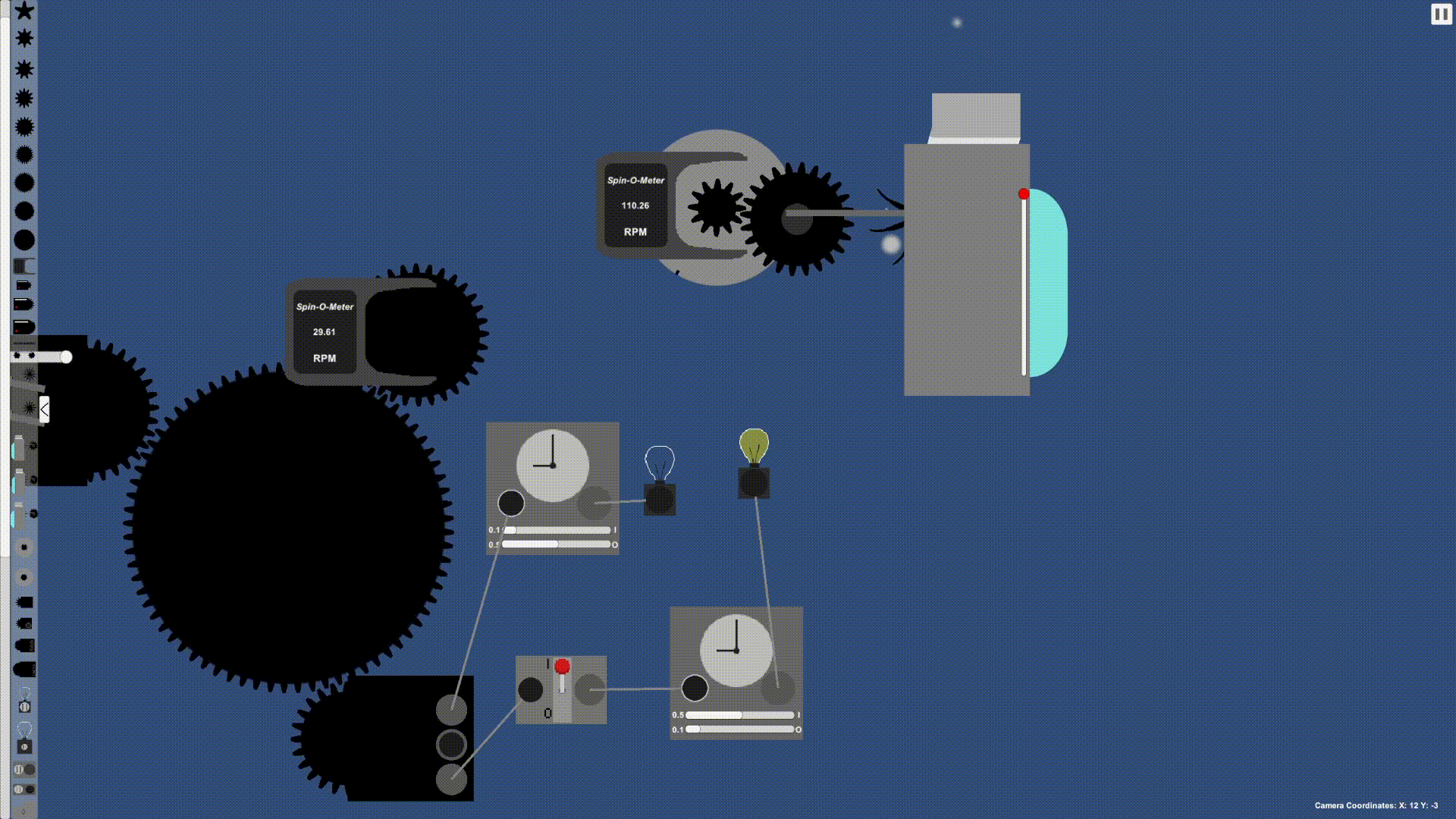 Small update which adds improvements to the Binary Clock (added a slider for Time On and Time Off), as well as adding a whole new item: a Tachometer, or a "Spin-O-Meter" as labeled in the game. This tool is used to see how fast a gear is spinning, which is measured in Rotations Per Minute (RPM).